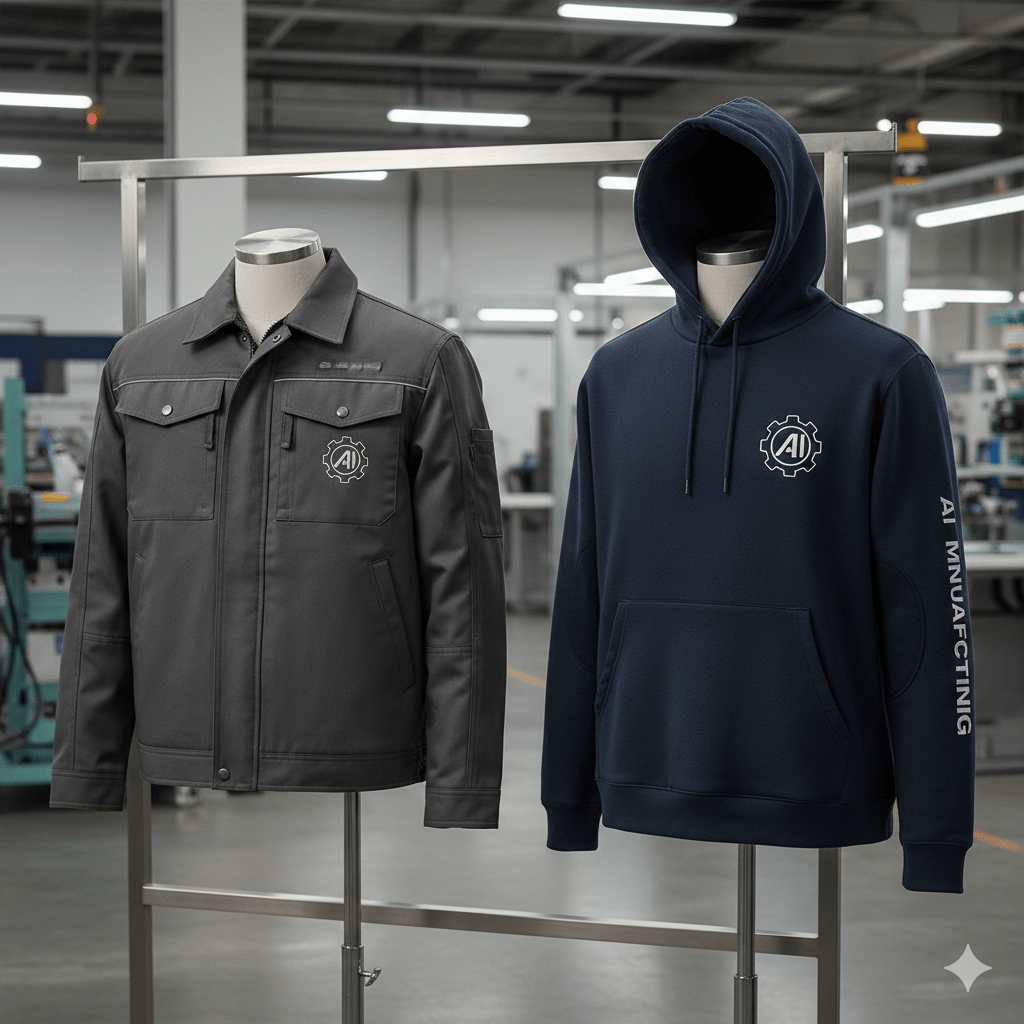 Comfortable jackets and hoodies for factory staff with high-quality branding.