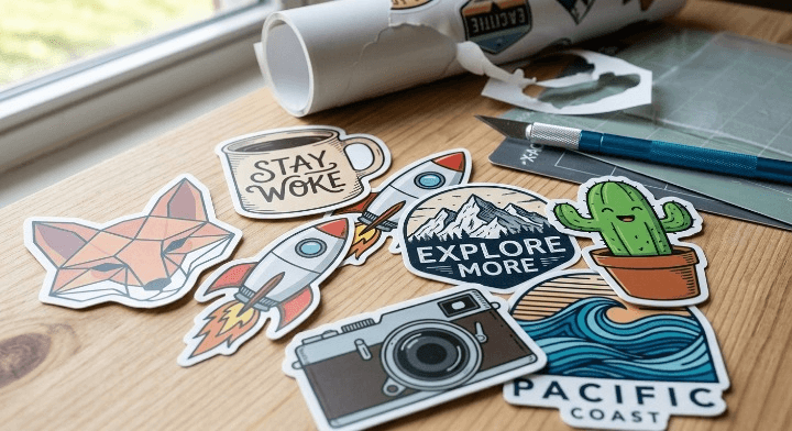 Stickers cut precisely to the shape of your logo or artwork are ideal for branding, merchandise, or marketing materials.